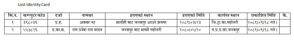 प्रहरी कर्मचारीको परिचय पत्र हराएको सम्बन्धी