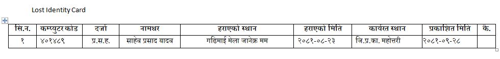 प्रहरी कर्मचारीको परिचय पत्र हराएको सम्बन्धी